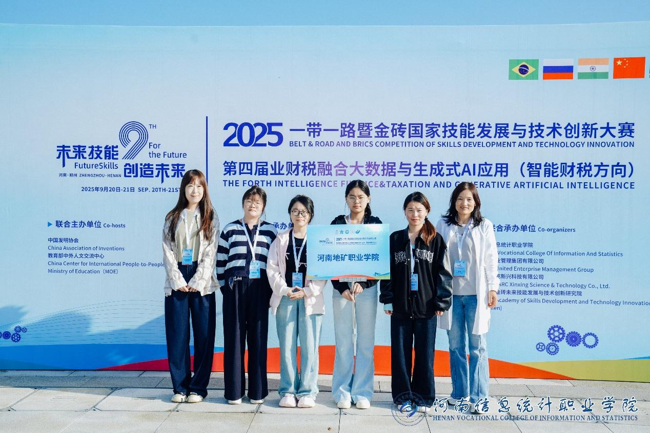 2025年9月19-20日,2025一带一路暨金砖国家技能发展与技术创新大赛“业财税融合大数据与生成式AI应用(智能财税方向)赛项决赛在河南信息统计职业学院成功举办。全国共有84支队伍参加本次大赛,经过激烈角逐,由我院大数据与会计专业苏世娟、李想老师指导的李旦旦、张亚妮、李佳茵、张硕团队在比赛中荣获国家级二等奖,实现我院在该项赛事成绩上的历史新突破。