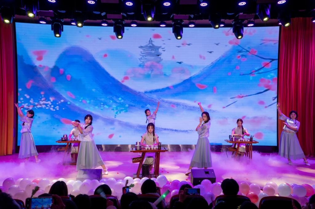 茶艺表演一招一式韵味悠长,充分展现了传统文化的独特魅力;男生合唱《人民军队忠于党》,歌声铿锵有力、饱含深情,传递出坚定的信念与担当;最后,全体教师合唱《明天会更好》,将晚会气氛推向高潮。此外,工学结合视频穿插播放,生动展现了我院的育人特色,让师生深切感受到学院办学成果。